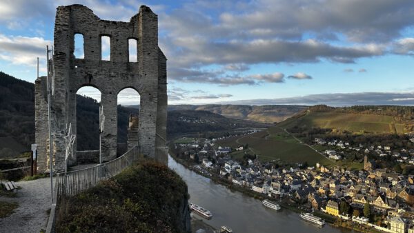 Der Stadtteil Traben liegt links der Mosel am Fuße der ehemaligen Festung Mont Royal und Trarbach rechts der Mosel auf der Hunsrück-Seite.